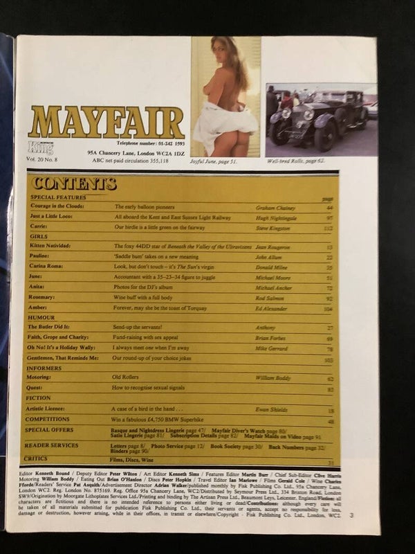 This is a vintage mayfair adult magazine vol 20 no 8 it has June Sands Mayfair girl of the month it is in a good read condition with a fold to the top right corner of front cover please see photo's. THANK YOU FOR LOOKING