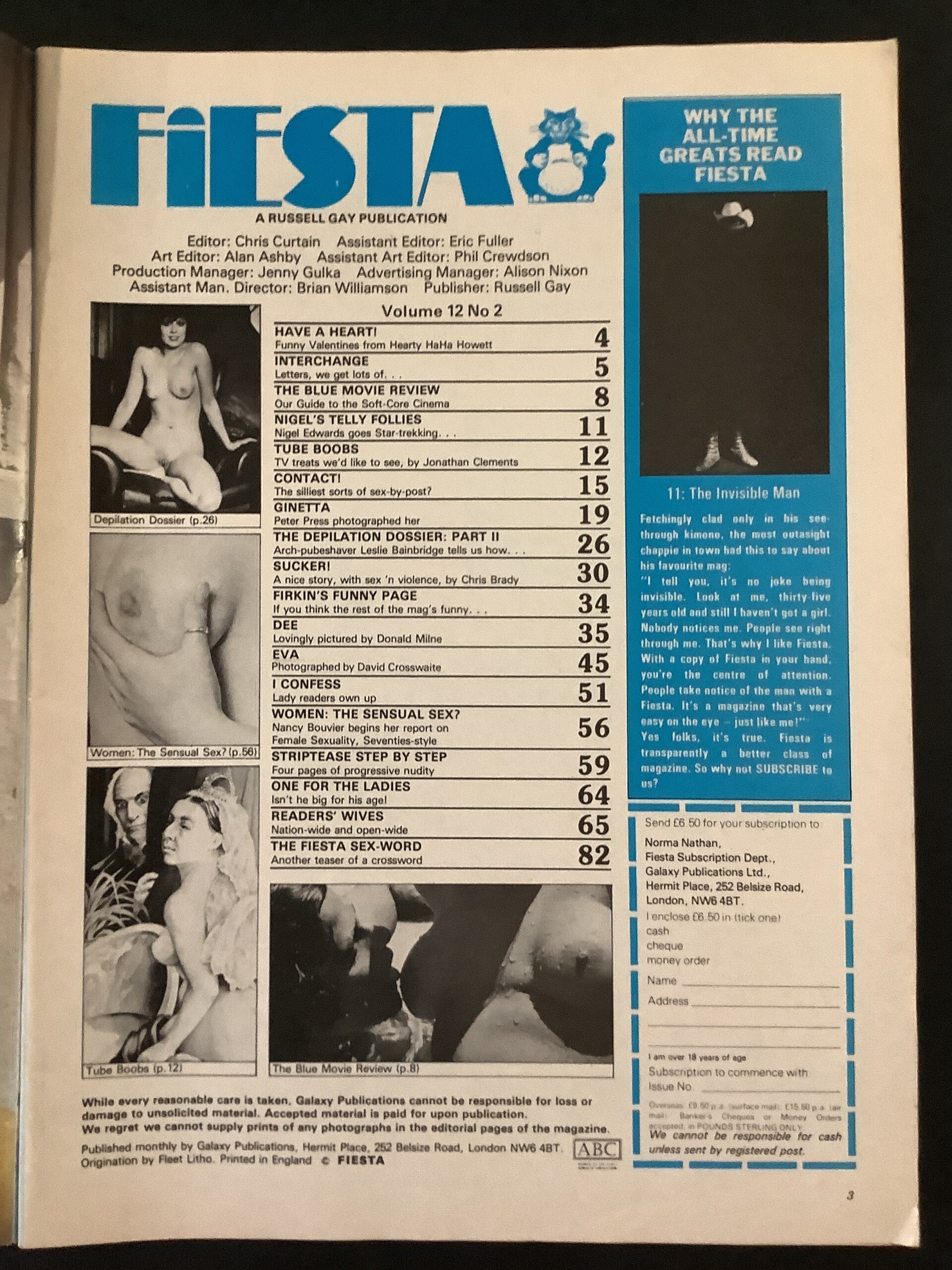 This is a vintage Fiesta adult magazine vol 12 no 2 it is in a good read condition with slight wear to edges of front cover and a fold on rear plus two pages near back of magazine please see photo's THANK YOU FOR LOOKING