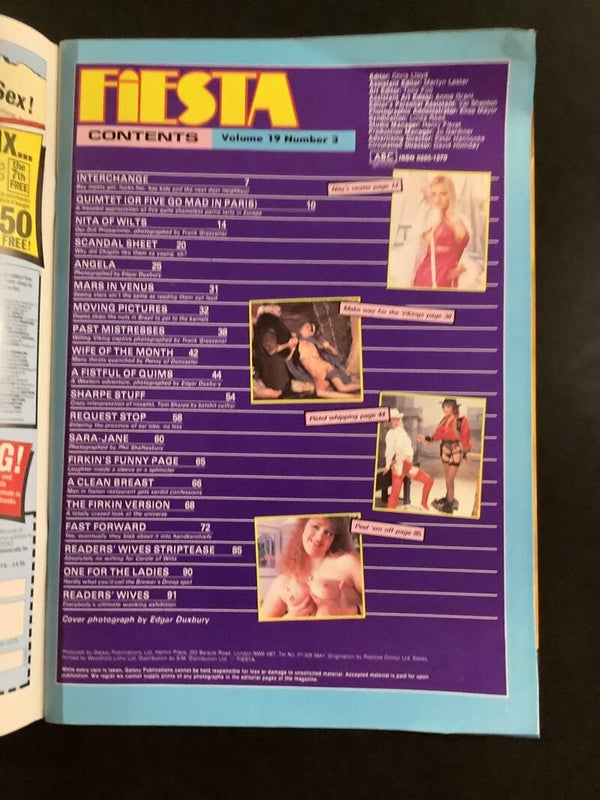 This is a vintage Fiesta adult magazine vol 19 no 3 it is in a good read condition with folds on content page and a few othersplease see photo's THNK YOU FOR LOOKING