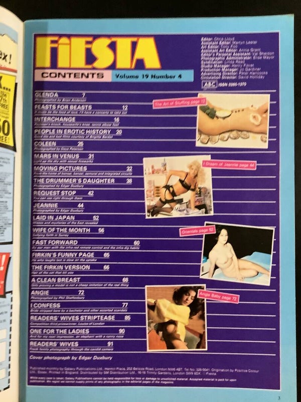This is a vintage Fiesta adult magazine vol 19 no 4 it is in a good read condition there is a fold on the front cover please see photo's THNK YOU FOR LOOKING