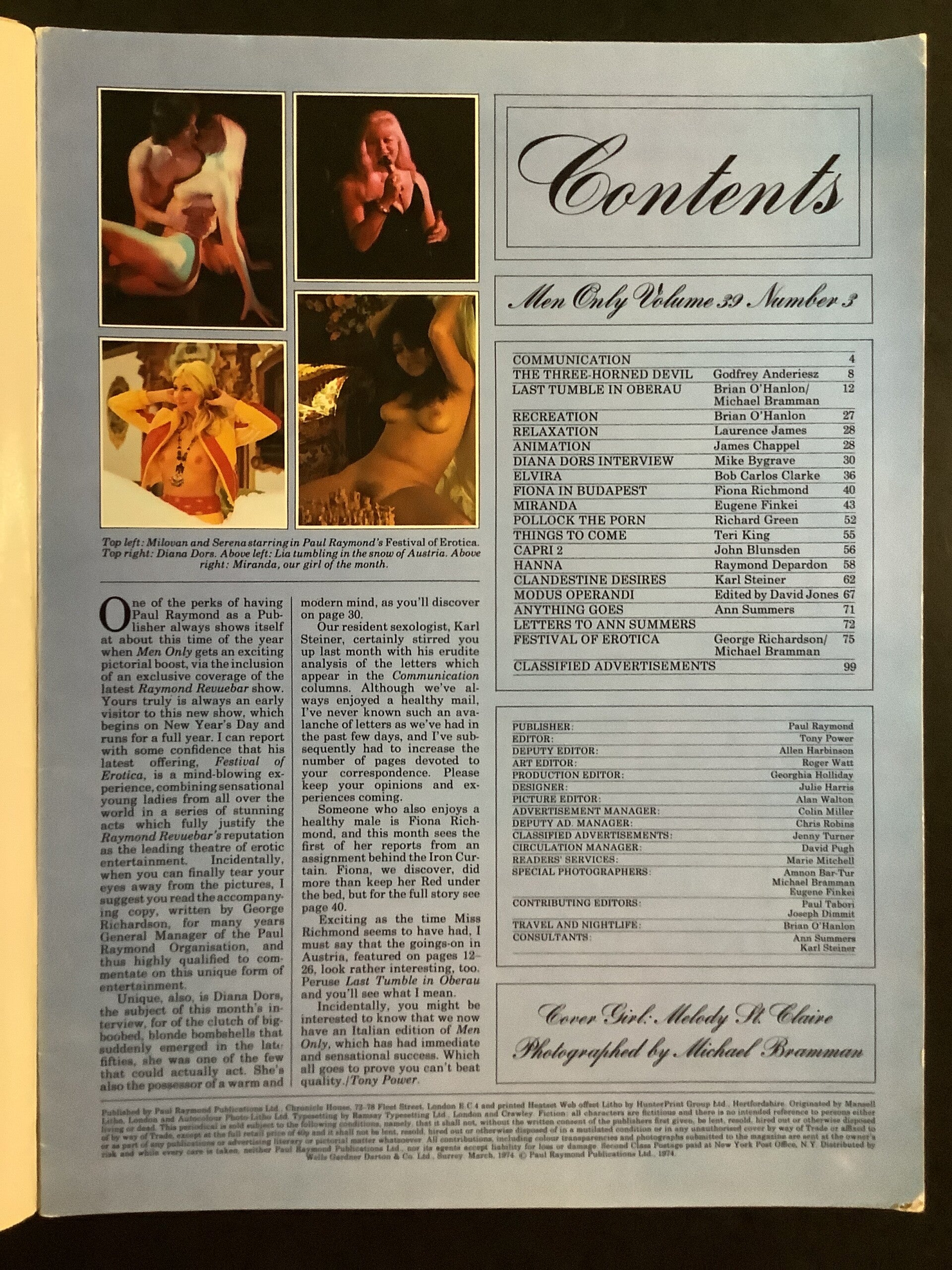 This is a vintage Men only adult magazine vol 39 no 3 it is in a good read conditionslight damage at bottom of front cover and the centre page is come away from staples please see photo's THANK YOU FOR LOOKING
